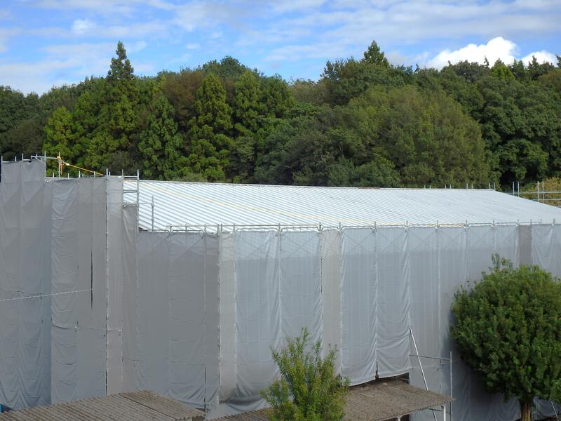 体育館の屋根塗装修繕工事は、錆の除去がほぼ完了しました。