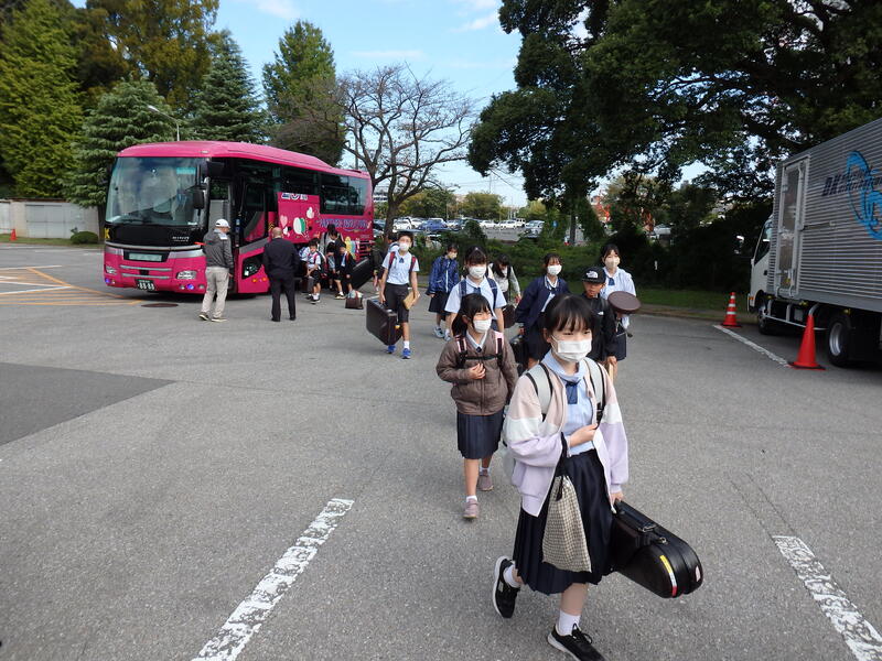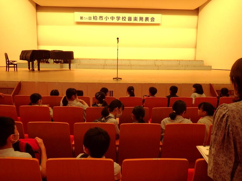 今日はブラスバンド部が「柏市小中学校音楽発表会」に出場する日。朝練習をしてから出発。バスの中ではリラックスモードで、和やかな会話が聞こえてきました。