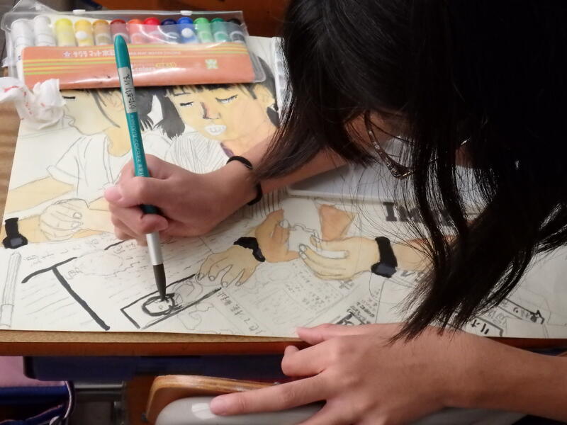 立体感を出すために、構図や色合い、遠近などを考えながら、真剣に描いていました。