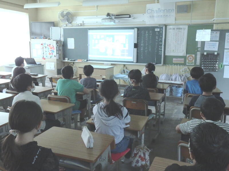 登校時間帯が過ぎ、学級の時間のあと、始業式(動画視聴方式)を行いました。内容は校長先生の話と給食委員会の話、みんな静かに視聴していました。