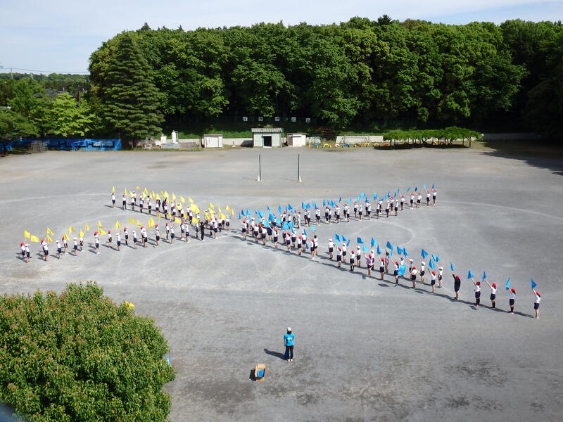 高学年の様子は、屋上から撮影してみました。さすが高学年、きれいに揃って動いていました。