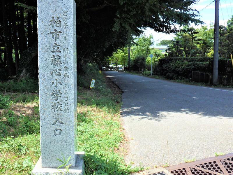 西側の校門の学校名のプレートです。現在の藤心小では、こちら側の門を通る児童がほとんどです。