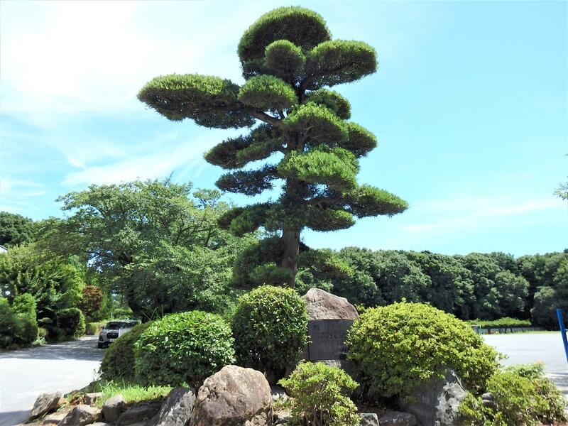 1年・6年の昇降口前には、開校記念の石碑と植樹群のロータリーがあります。