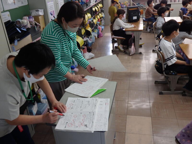 1年生の教室で朝の時間帯のサポートをしてくださる「朝サポ先生」による取り組みがスタートして、もうすぐ1ヵ月になります。毎日、交代でサポートしていただき大変助かっています。「朝サポ先生」はスタート時2名でしたが、5名まで増えました。