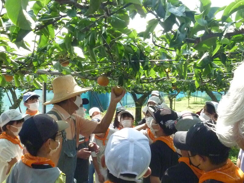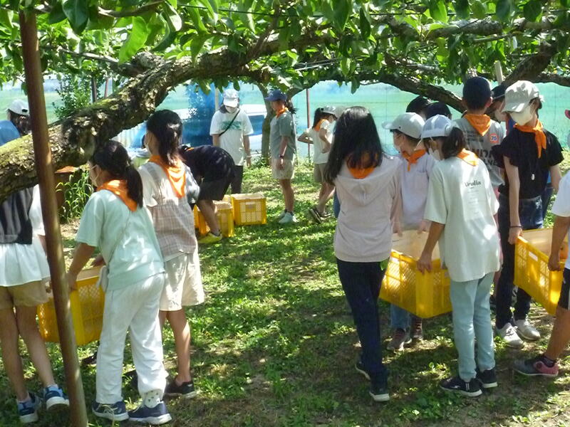 【農業体験】梨の収穫作業の様子です。
