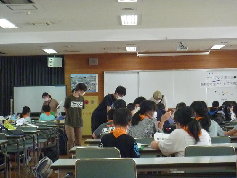 朝食後に部屋に戻り、部屋をきれいにして、自分の荷物を確認し、多目的ホールに荷物を移動しました。2日目の活動は、「体験学習」でした。農業体験と釣り体験に分かれての活動でした。