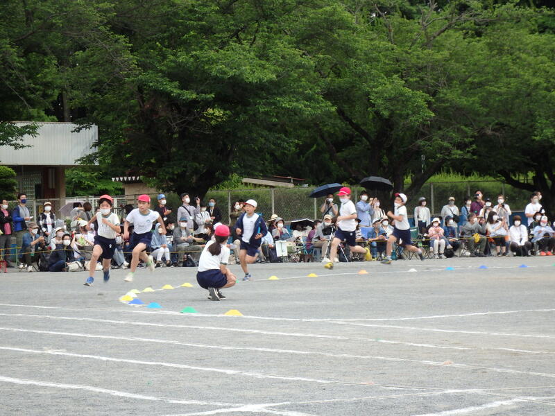 5年生 100メートル走。高学年になるとスピードもあり、見ていて、つい応援に熱が入ってしまいます。