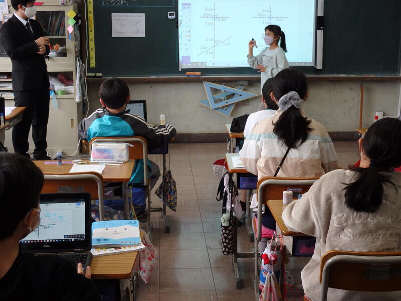 4年生は「四角形の特ちょうを調べよう」の学習。2本の対角線に注目し、様々な四角形の特徴を見つけ出す場面でした。