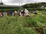 朝礼台の後ろに5分前ぐらいにお集まりください。軍手,鎌は学校のものをお貸しします。