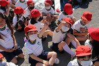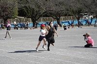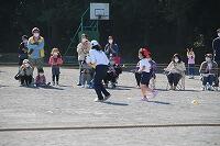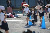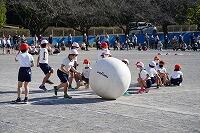 2年生団体種目「大きな赤かぶ白かぶ・・・」です。ボールをかぶに見立て農協に納めます。