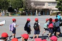 2・5年生が集合してオリンピックの閉会式のように退場です。