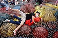 フィールドアスレチックと滑り台、ボール島に分かれて遊びます。