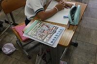 5年生は家庭科の授業で波縫いですが、昼休みに自主的に練習しています。担任の先生も昼休み返上で指導してくれています。