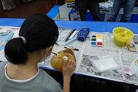 夕食後の体験学習はふくべ細工です。夜は疲れていたのかみんな早く寝たようです。