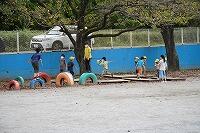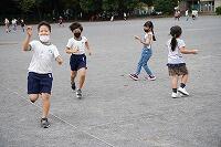 業間休みは広い校庭で元気いっぱいに遊びます。ただし遊具やボールの使用はできません。