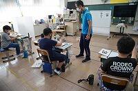 朝登校したら健康観察チエックは昇降口で行います。朝の会や授業はリモートで参加する児童と教室で受ける児童のハイブリッド授業です。