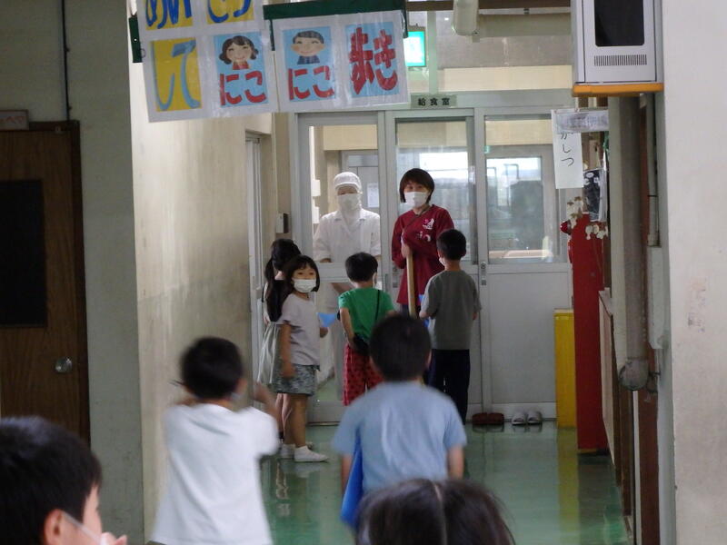 2年生と1年生が学校探険をしました。校内を仲良く歩いて、いろいろな場所を見学して回りました。教室に入るときは「失礼します。」と、話を聞けた先生には「ありがとうございました。」と、しっかりしていました。
