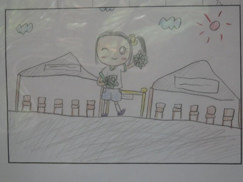 運動会が終わり、今週は、運動会の思い出を作文にしたり描画にしたりした作品が、廊下に掲示され始めました。低学年の子ども達の作品を少し紹介します。