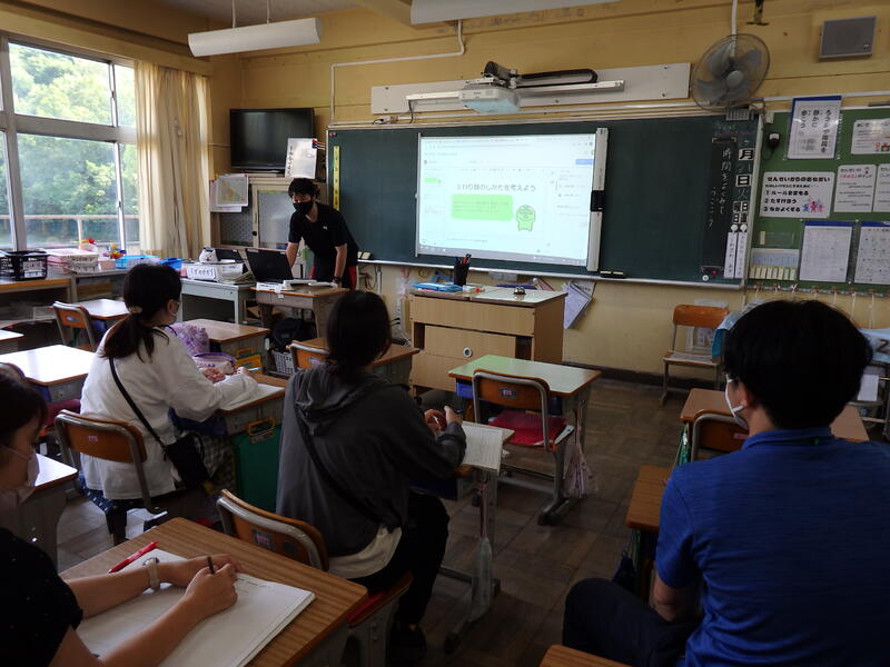 GIGAスクール構想により、学校のICT環境が充実してきたこともあって、ICT機器や一人一台端末の活用も日常化してきました。今日は、各学年学級で、どのような活用をしているのか実践例を紹介しながらの研修でした。