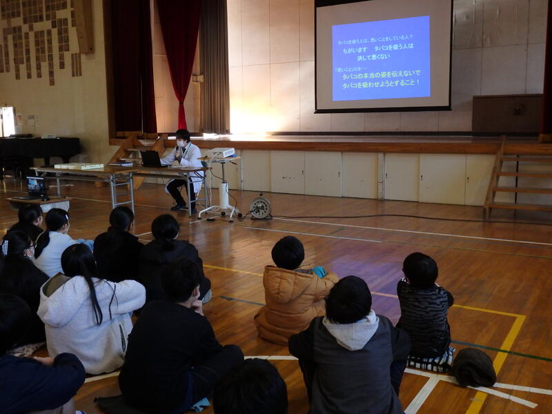 たばこは1本すうと寿命が14分30秒短くなるそうです。また、受動喫煙による害のように、たばこをすうことは家族や友だちを病気にしてしまう可能性があります。子ども達は、喫煙の影響による肺の変化や口腔内の変化、肌の変化などの画像を見て、人体に与える影響の大きさを知ることができました。なんとなくはわかっていたことを今日の特別授業でしっかりと理解したようです。