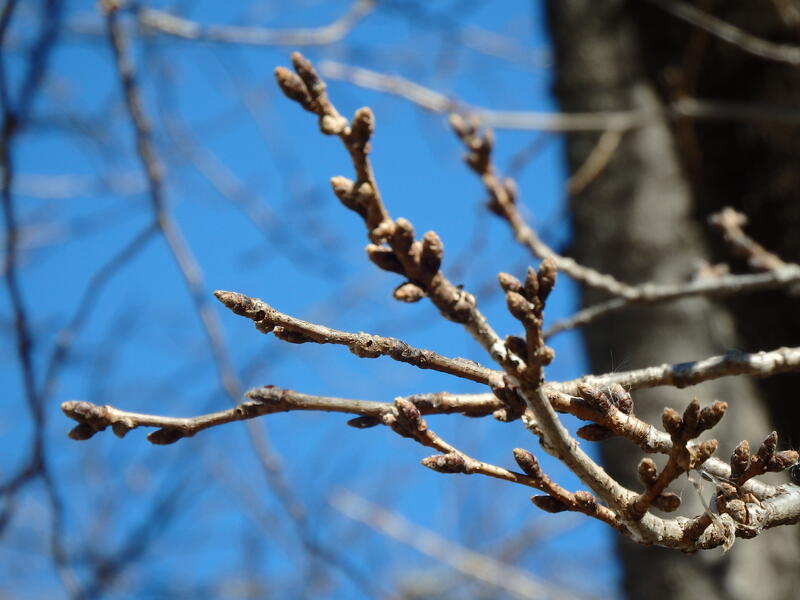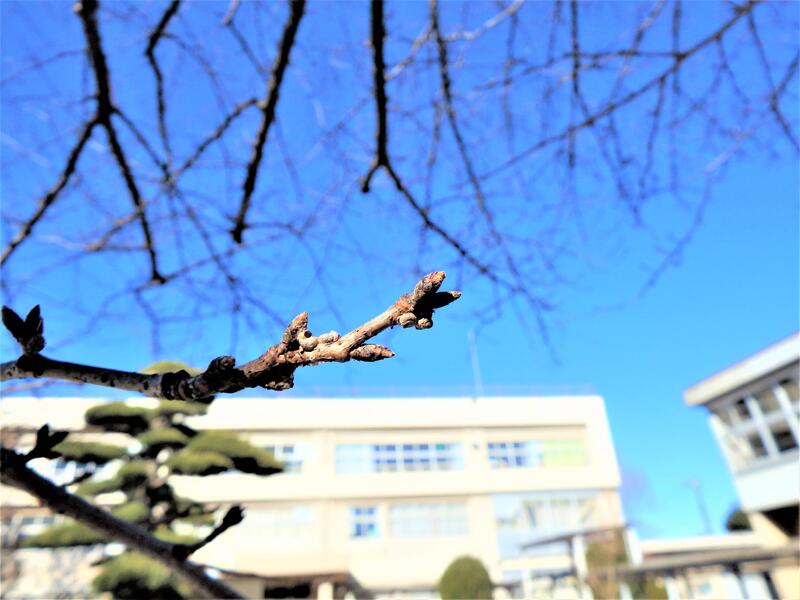 ぼうけん山の木々も校舎前通路脇の木々も、すっかり冬の姿。この木々に雪が降り積もると藤心の素敵な冬景色を見せてくれそうです。雪が降り積もると子ども達はきっと大喜びでしょう。でも、1月の天気予報は、晴れが続くようです。寒い冬の期間に入りましたが、よく見ると春の準備をすでに始めている植物も見られます。