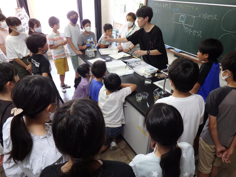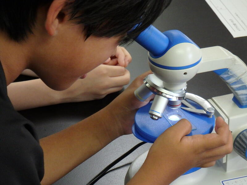 何か動いている生き物を発見することができたようです。顕微鏡を通して見る「池の水の世界」に小さな生き物がいる事実を目撃し、とても楽しそうでした。