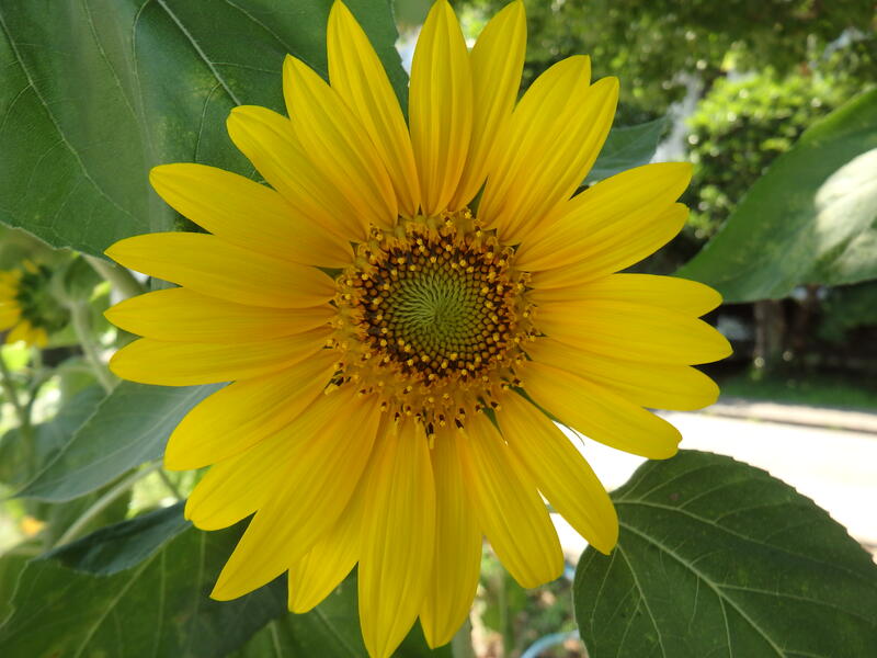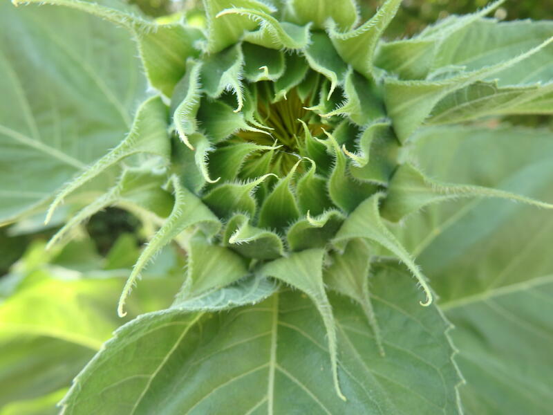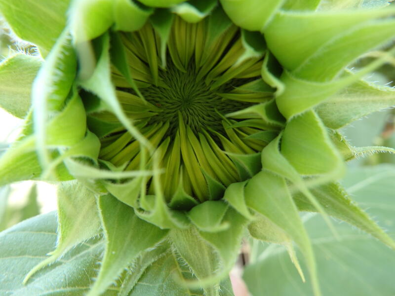 最初、花びらは中心に向かってきれいに並んでいます。それが徐々に開いて、よく見るヒマワリの姿になります。鮮やかな黄色が夏にピッタリです。