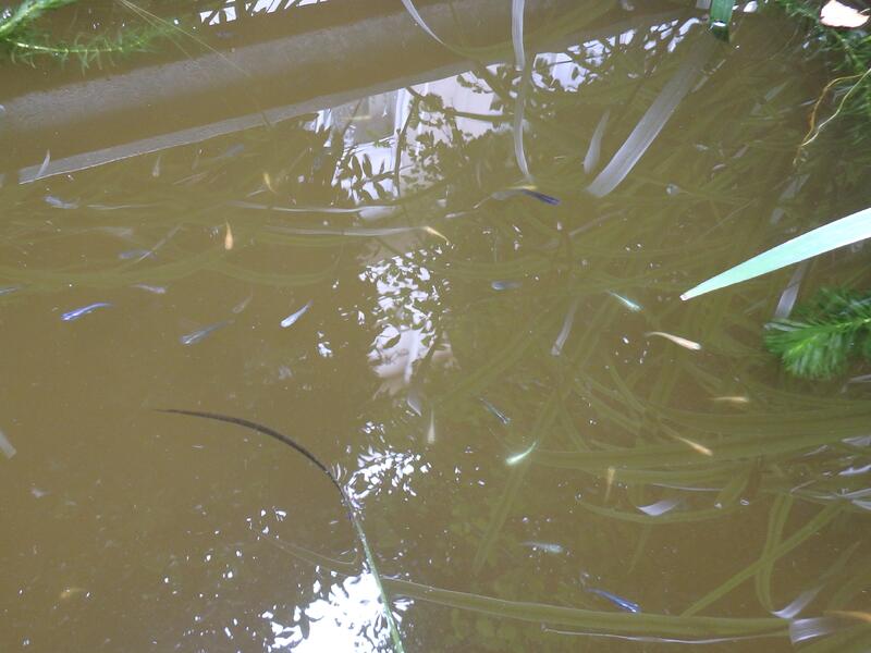 7月13日の藤心 観察池(ビオトープ)にはメダカがたくさん