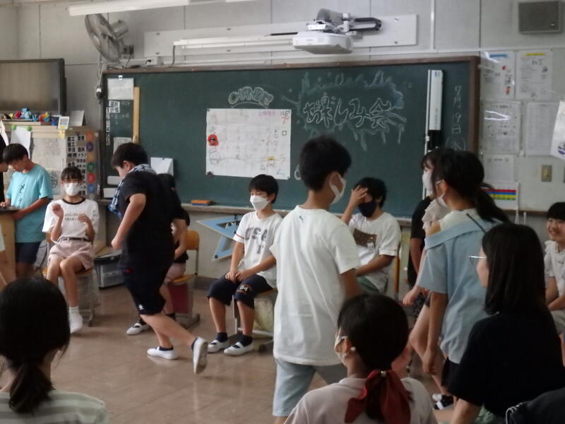 涼しい教室で、暑い校庭で、子ども達はとても楽しそうでした。「お楽しみ会」は、単なる遊びではなく、子ども達が話し合いをする中で、「いつ、どこで、何を、どれだけ、どのように」などをみんなが納得するように決めていきます。このような取り組みを多くすることで、集団としての絆が深まります。全員がしっかり学習をして、全員が思い切り遊ぶ。子ども達にとって大切なことです。