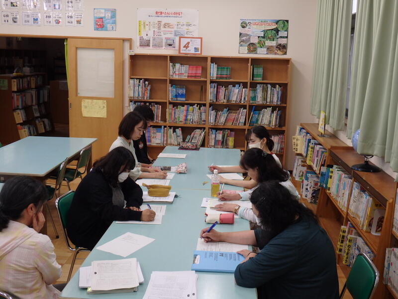 今日の藤心は、昨日までの暑さではなく、朝から少し気温が低くなっており正午になっても30度以下。夏にしてはちょうど良い暑さです。今日の午前中から「校内職員研修デー」ということで、いわゆる「先生達の勉強会」を実施ました。午前中は、3回に分けて実施。第1部は全員で「国語の授業(物語)について」の研修、