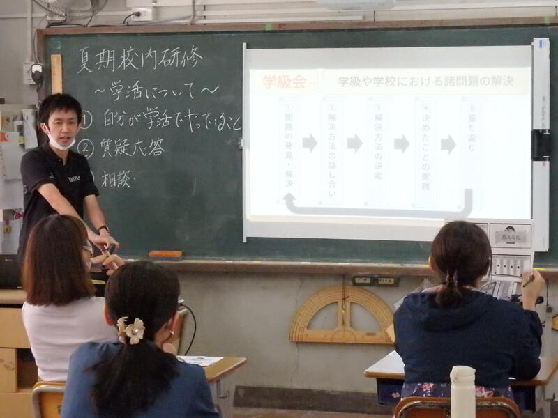夏季休業期間中は、今回の研修会のほかにも中学校との合同研修会をしたり、各種研修会に参加したり、教育ミニ集会をしたり、2学期の校外学習や各種行事関係の準備を進めたりします。