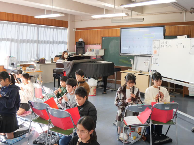 音楽室では、5年生が「威風堂々」を練習していました。英国の作曲家、エドワード・エルガーの作品です。