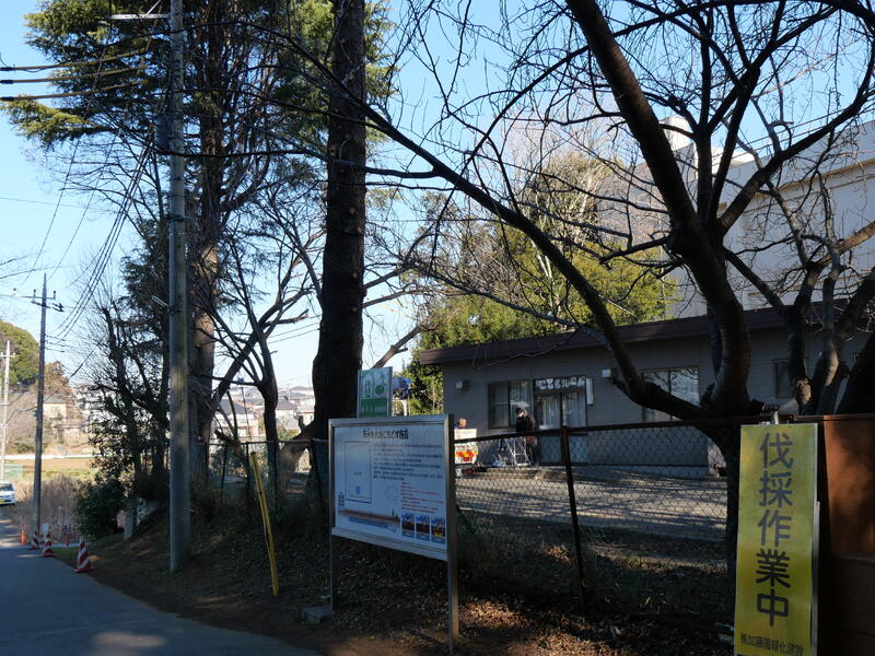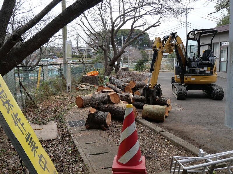 西門付近の高木の剪定・伐採作業が始まりました。放課後ルーム周辺を整備して、明るくします。