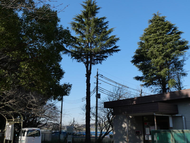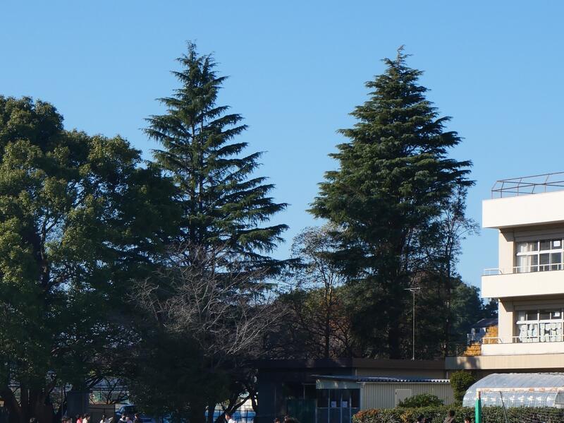 以前は、樹木が校舎よりも高くなり、強風が吹くと横に大きく揺れて枝がよく落下していました。