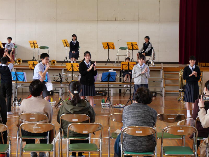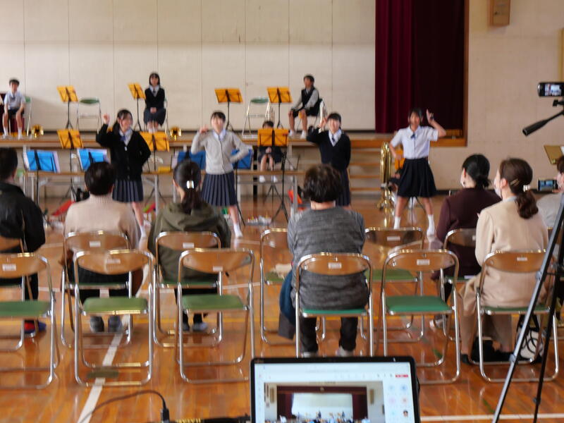 今回は、感染症が流行している状況のため、体育館での参観は関係保護者の方のみ。藤っ子のみんなは、各教室でオンライン配信での視聴となりました。学級閉鎖により、今回、参加できていない部員がいるので、2月29日(木)に再度、「さよならコンサート」を実施します。次回は,藤っ子のみんなも体育館で、生演奏を聴くことができます。関係保護者の方も、もう一度参観できます。