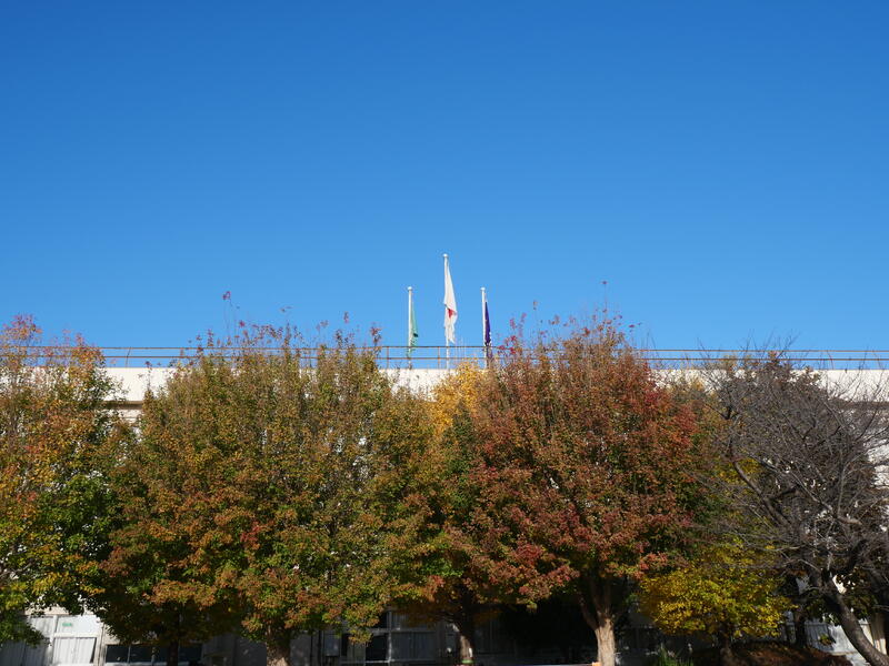 葉があるときは、校舎も隠れてしまうほどでした。(11月の頃の様子)