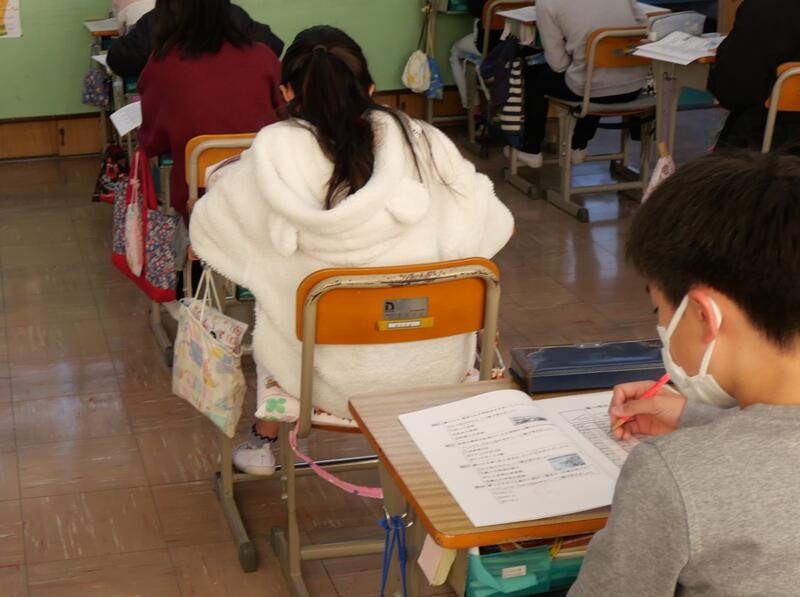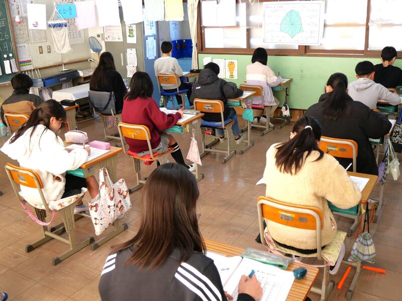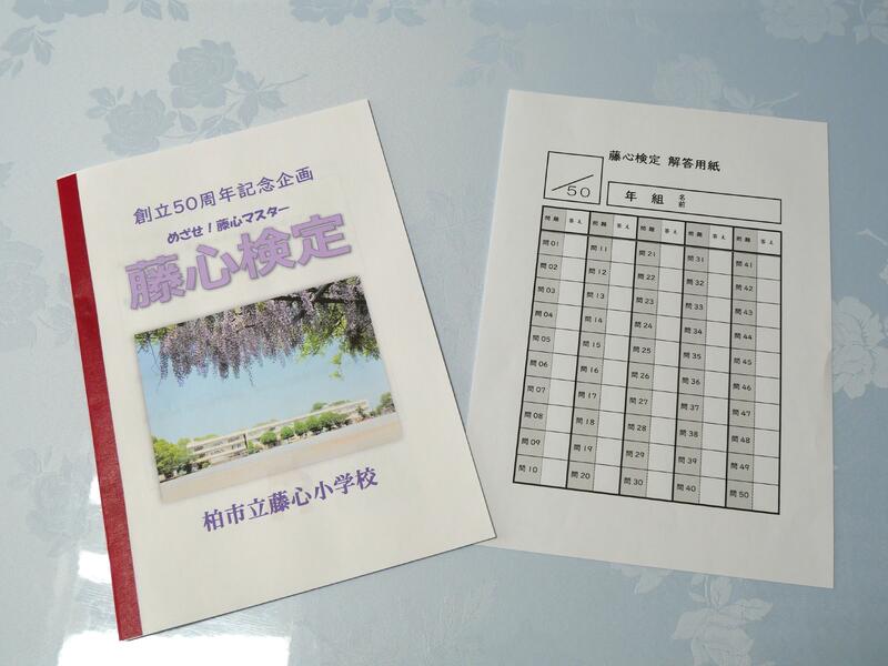 「藤心検定」」は、藤心小と藤心地域に関する問題が50問用意されており、検定の合格認定は40問以上の正解となっています。「藤心検定」にチャレンジする6年生の藤っ子たちは、少し緊張した様子で問題を解き進めていました。