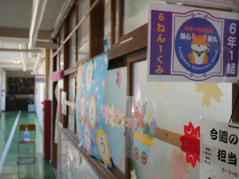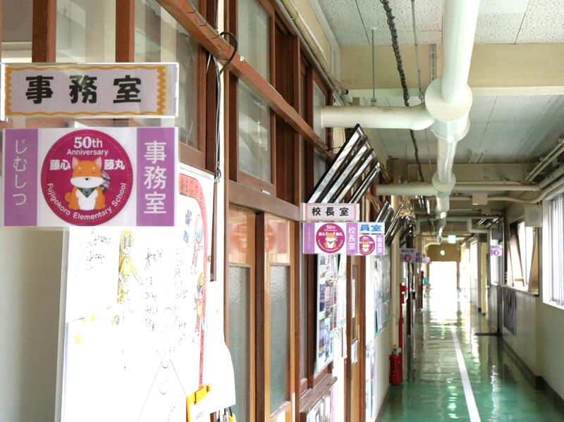 今日の藤心はうっすらと雪化粧の朝でしたが、11時頃にはすっかり雪はなくなりました。でも、気温はなかなか上がらず2℃のまま時間が流れます。創立50周年を記念して各教室に表示札を取り付けていました。藤っ子たちに人気の藤心小マスコットキャラクター「藤丸」が全ての教室にいます。