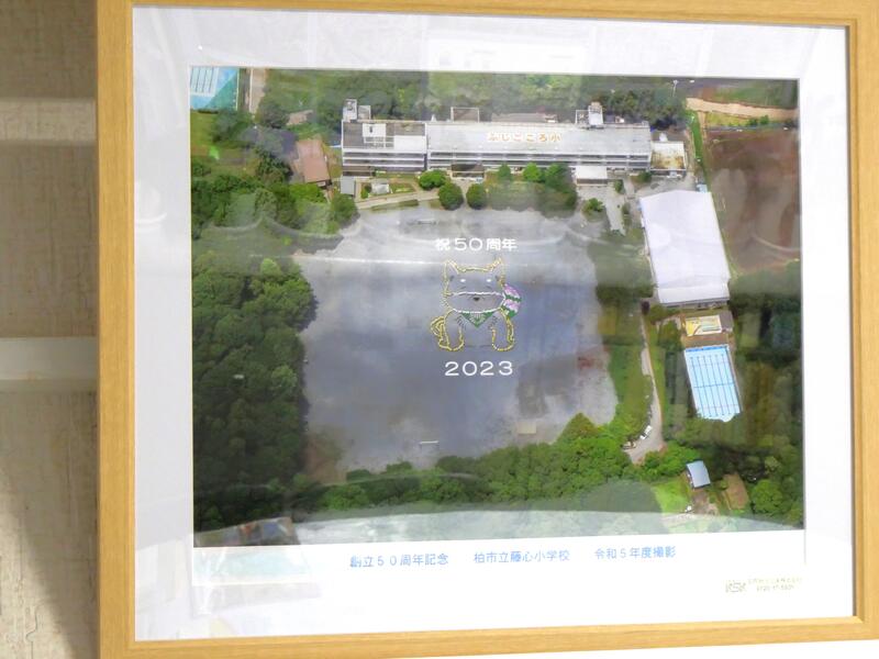 また、50周年の記念で撮影した航空写真の大型パネルが先日届いたので、校長室に掲示しました。