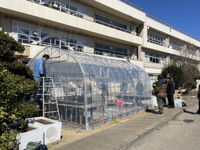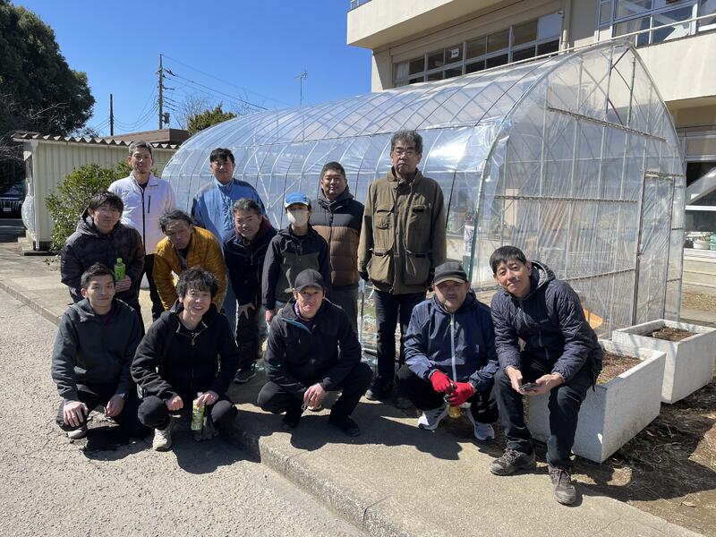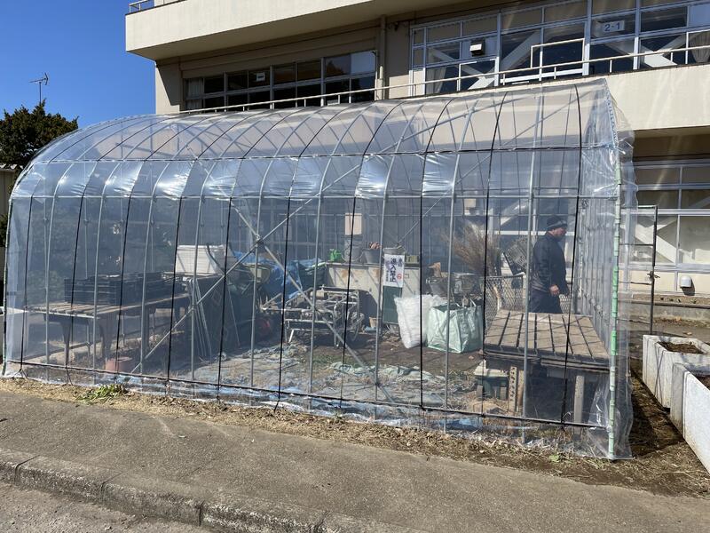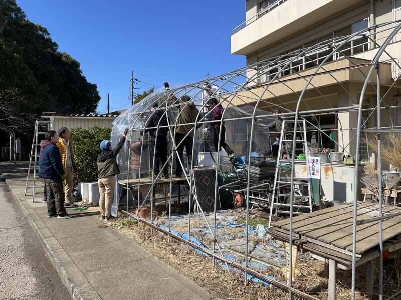 寒く、強風が吹く中での作業でしたが、多くの方々の協力でビニールハウスがきれいになりました。