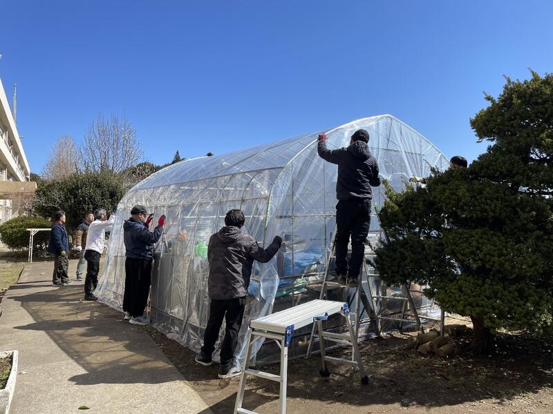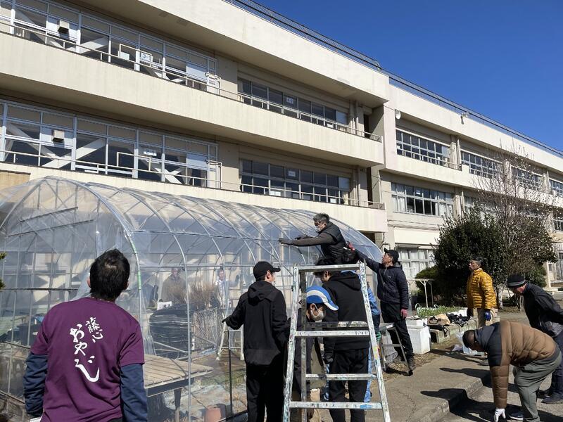 3月9日の土曜日、藤心おやじの会のみなさんによって、ビニールハウスの張り替え作業が行われました。