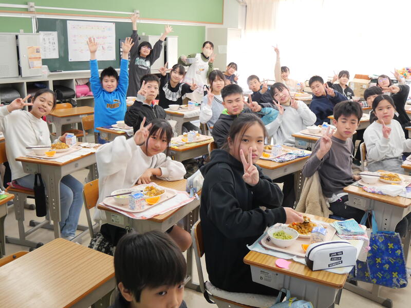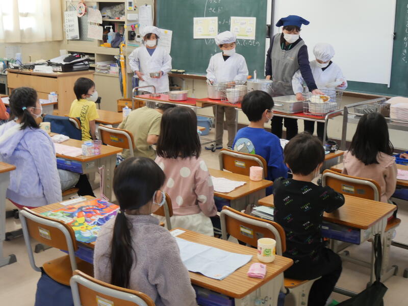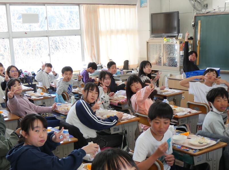 楽しい給食タイムでした。今日は、この後、5年生が卒業式前日準備をしてくれます。明日は、1年生から5年生の藤っ子たちはお休みです。