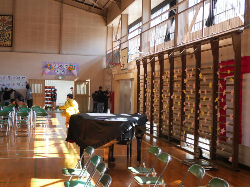 最高の卒業式にするために、5年生が美化活動と式場設営、飾り付け等を一生懸命にしてくれました。