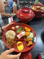 今日の夕食。デザートにアイスも出ました。煮込みハンバーグがとても美味しかったです。
