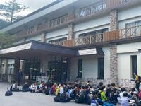 ホテルに到着し、入館式を終え、これから湯ノ湖へ散歩に行きます。