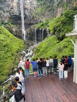 この後、戦場ヶ原ハイキングの予定でしたが、児童の安全を考慮し、三本松〜展望台〜湯滝に予定を変更します。