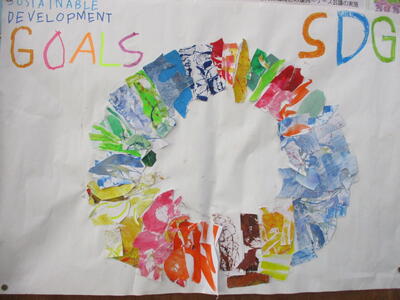 4年2組の皆さんが、「SDGs」マークを作ってきてくれました。