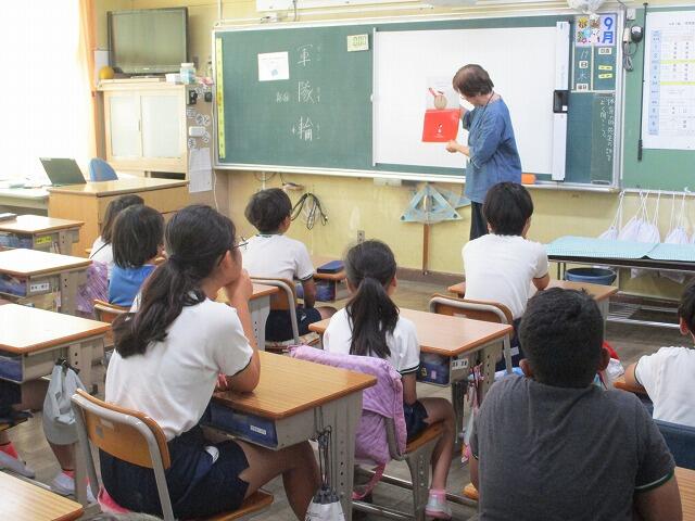 業間休みに体育委員会の児童達が低学年に向けて,スポーツテストで行われるボールスローの投げ方を教えてくれました。ボールの握り方や腕の振り方,助走の取り方など詳しく教えてくれました。