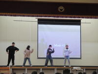 最後は,ダンスクラブのメンバーを中心にステージで見本を見せながら,全員でダンスメドレー。流行りの曲や,ちょっと懐かしい曲など,様々な曲が流れる中,全員でダンスを踊り,体育館は熱気にあふれていました。