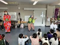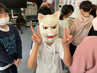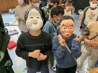 お囃子と踊りを披露していただいた後は,数々のお面や様々な楽器に触れて体験タイムです。子どもたちは,嬉しそうにお面をつけたり,楽器を演奏してみたり,笑顔がいっぱいでした。地域の皆さんともたくさん交流ができて,何年か後には逆井囃子の担い手になっている子もいるかもしれませんね。